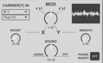 This device multiplies the sound of any two tracks by amplitude modulation, ring modulation, or modulation by FFT. Try to discover new sounds by combining various sounds you have created :)